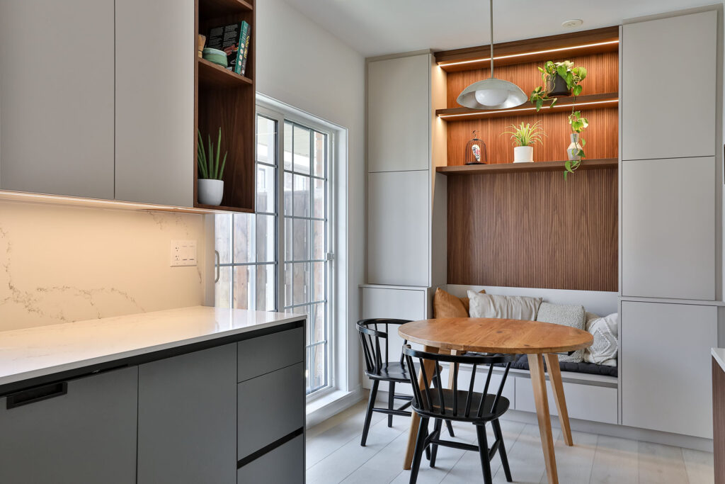 - Built-in seating, such as a bench or banquette, is a savvy way to add extra seating. Top the bench with plump cushions for extra coziness and comfort. Short on storage? Add deep drawers underneath or a lift-up lid on the bench seat to store platters, cookware and linens.